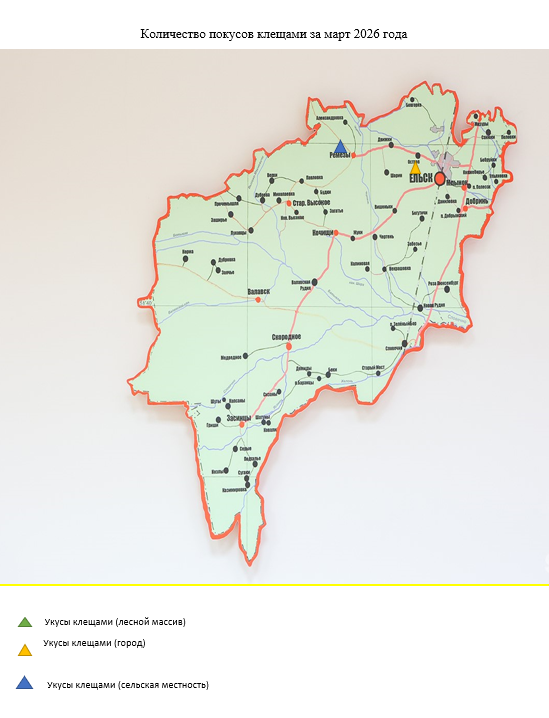 Количество покусов клещами за март 2026 года