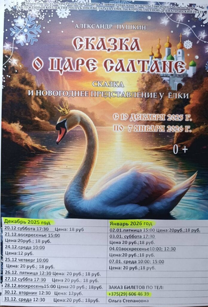Сказка о царе Салтане и новогоднее представление у ёлки с 19 декабря 2025 по 7 января 2026